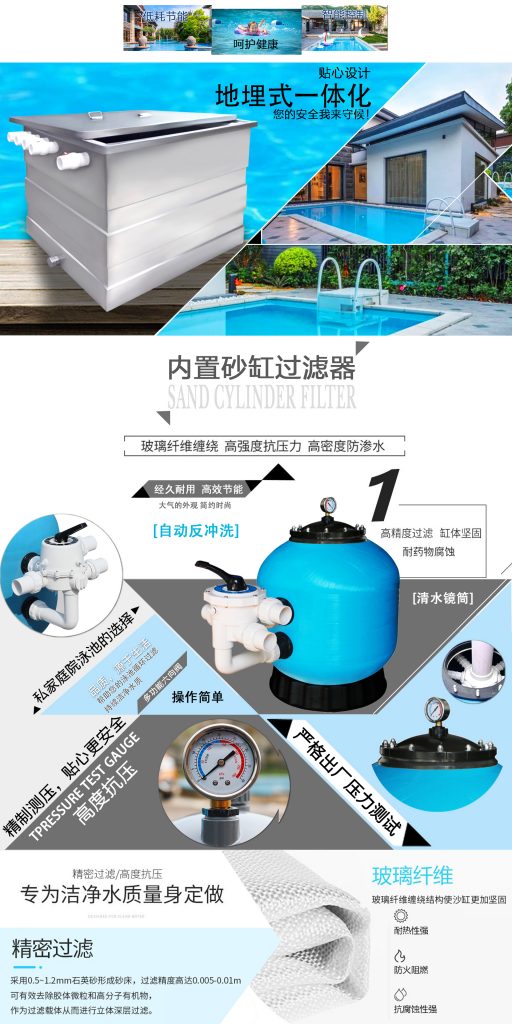泳池地埋式一体机以集成化、智能化、环保化的核心优势,精准适配高端别墅泳池的品质定位与运维需求,既解决了传统泳池运维的诸多痛点,又实现了设备与庭院景观的融合,为高端别墅业主提供了更安全、更省心、更具品质的私享泳池体验。未来,将持续以技术升级为核心,不断优化产品性能,推动高端别墅泳池过滤运维水平提升。